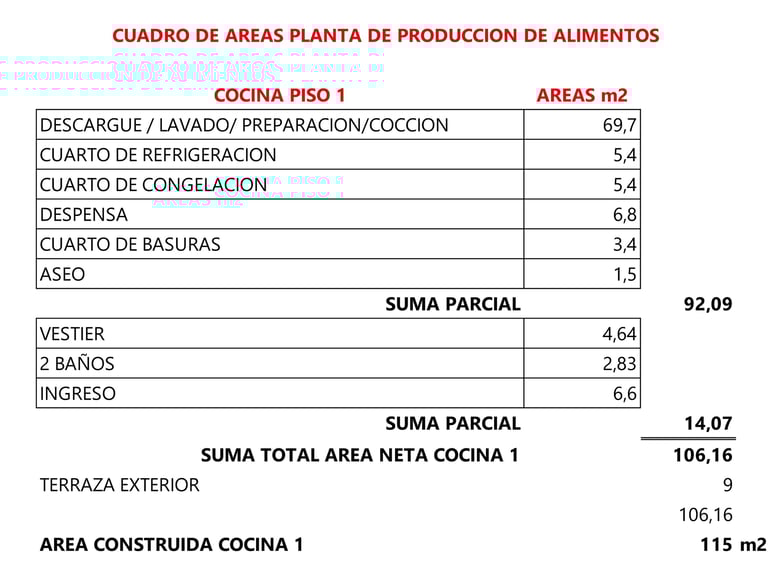Zona de recibo de materia prima: Compuesta por mesa con poceta para lavado y desinfección de materia prima.